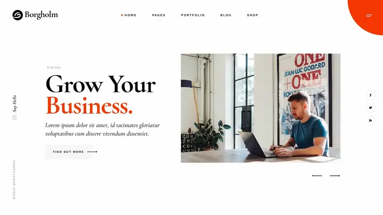 Borgholm ile web siteniz kesinlikle göz alıcı bir tasarıma sahip olacak. Şablonlar harika görünüyor ve günümüzde çok yaygın olan standart pazarlama web sitesi trendlerinden farklı. Dikkate değer bir özellik, projelerinizi sergilemek için size çekici bir yol sağlayan portföy şablonlarıdır.