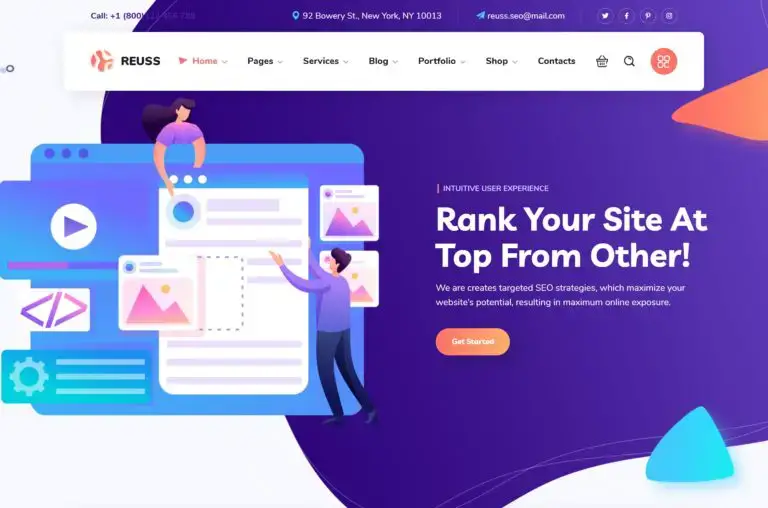 Reuss, pazarlama ajansları ve hizmet sağlayıcılar için web siteleri oluşturmak için çekici bir WordPress temasıdır.